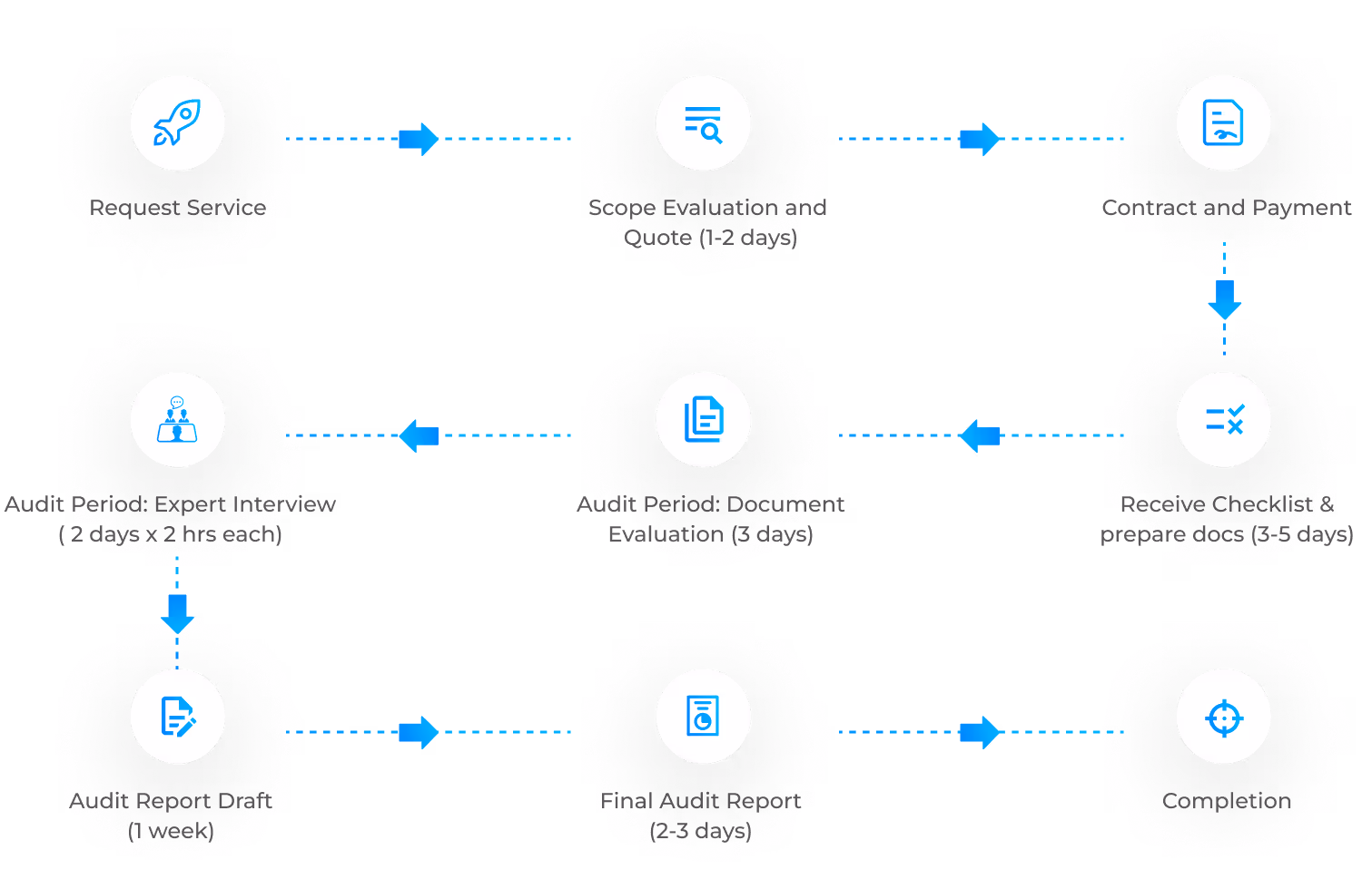 The audit duration depends on the scope of the audit. For simple audits on the user level we estimate 4-6 weeks, depending on the availability of your documentation. For larger audits, and organizational/ internal AI audits, the duration is multiple months.